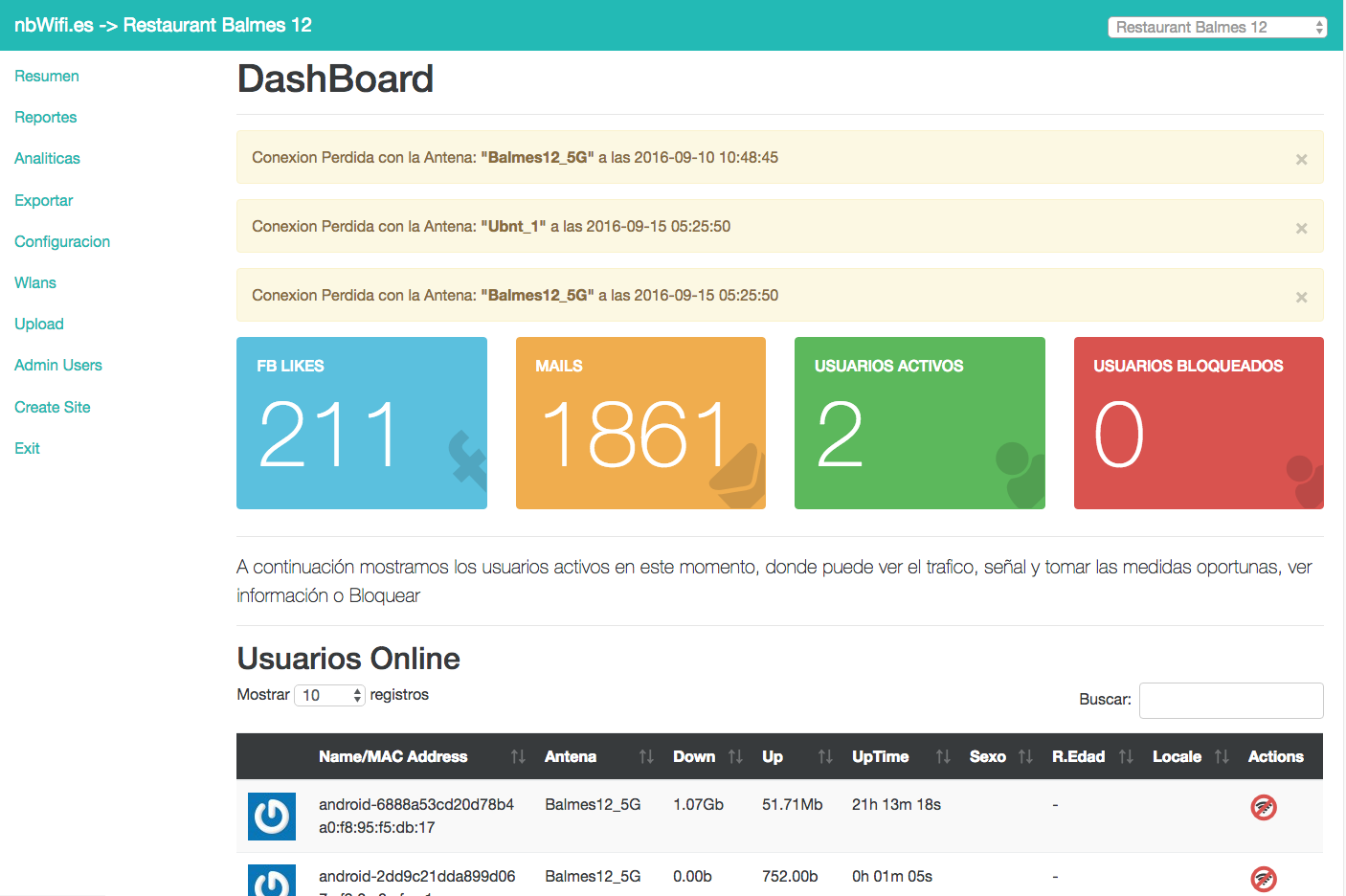 Portal donde controlar y ver el estado de la wifi, así como exportar y ver estadísticas
