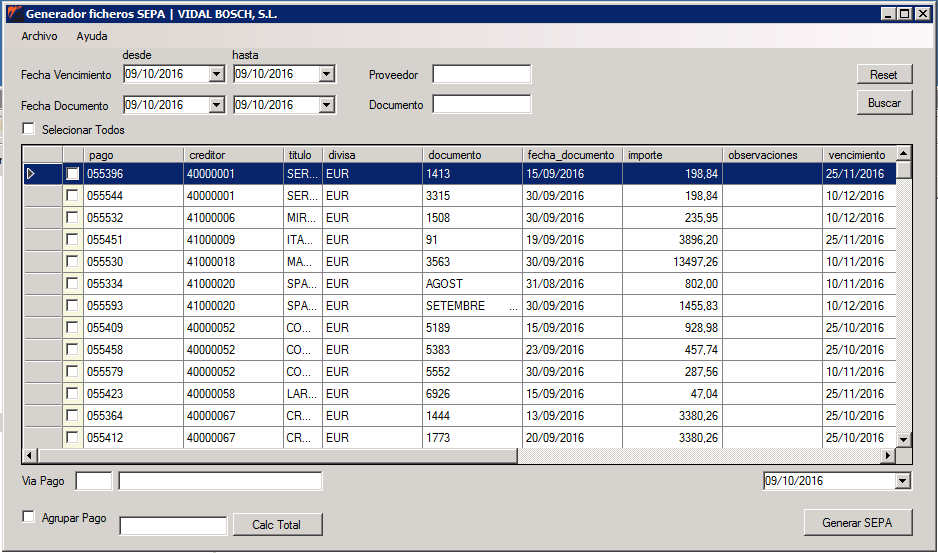 Generador de ficheros SEPA, cogiendo los datos de pagos del Programa APM